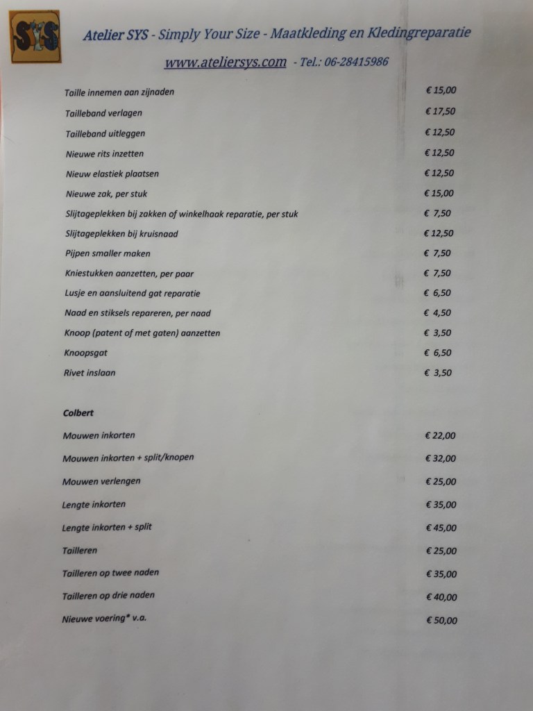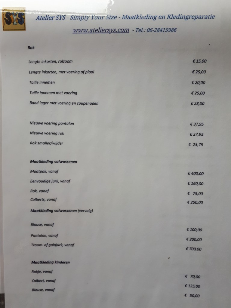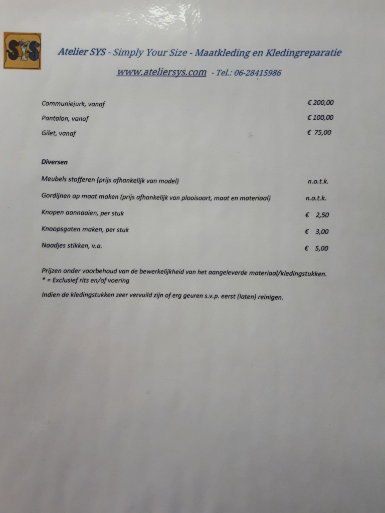 Prijslijst met richtprijzen in het atelier aanwezig.